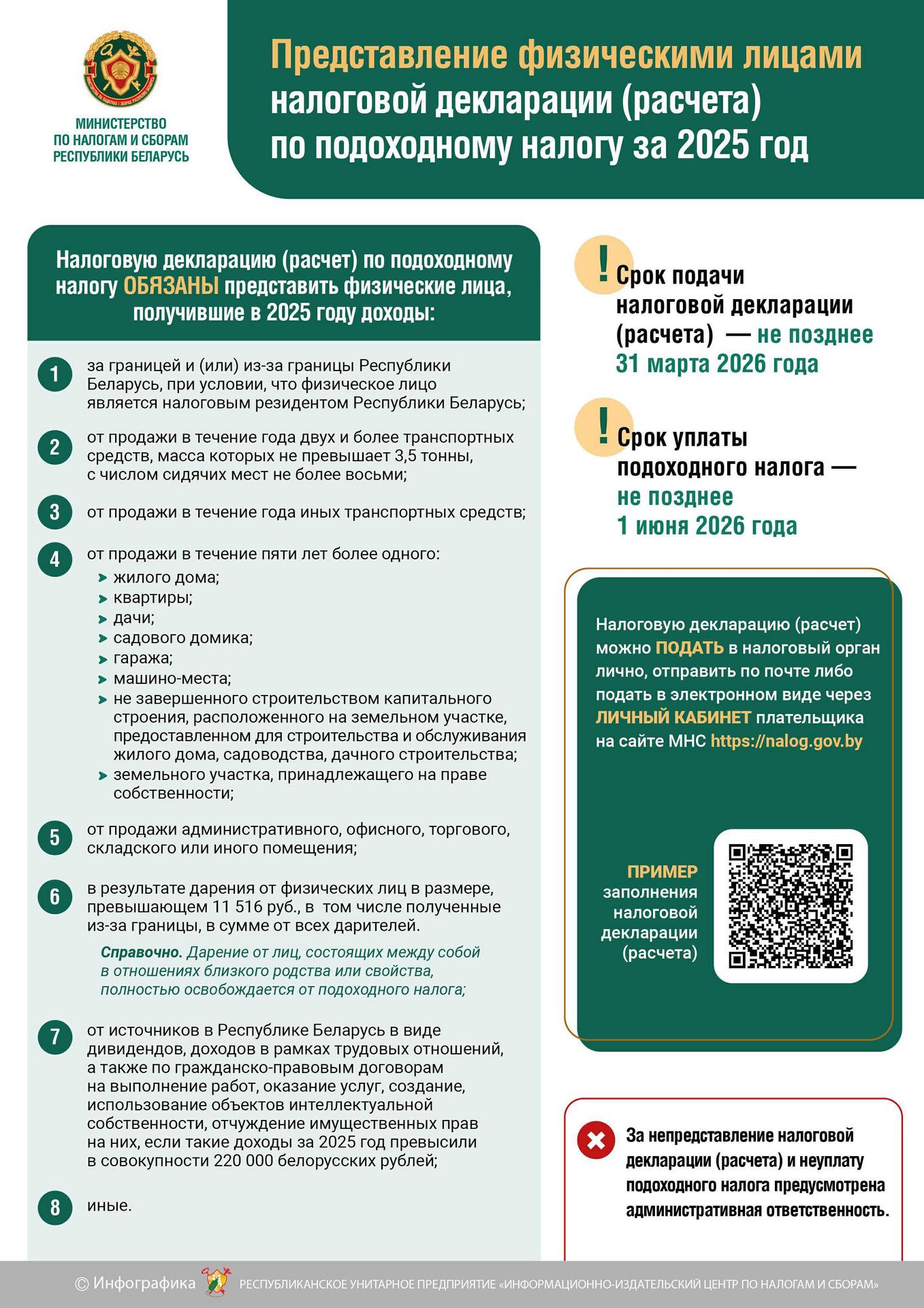 Представление физическими лицами налоговой декларации (расчета) по подоходному налогу за 2025 год